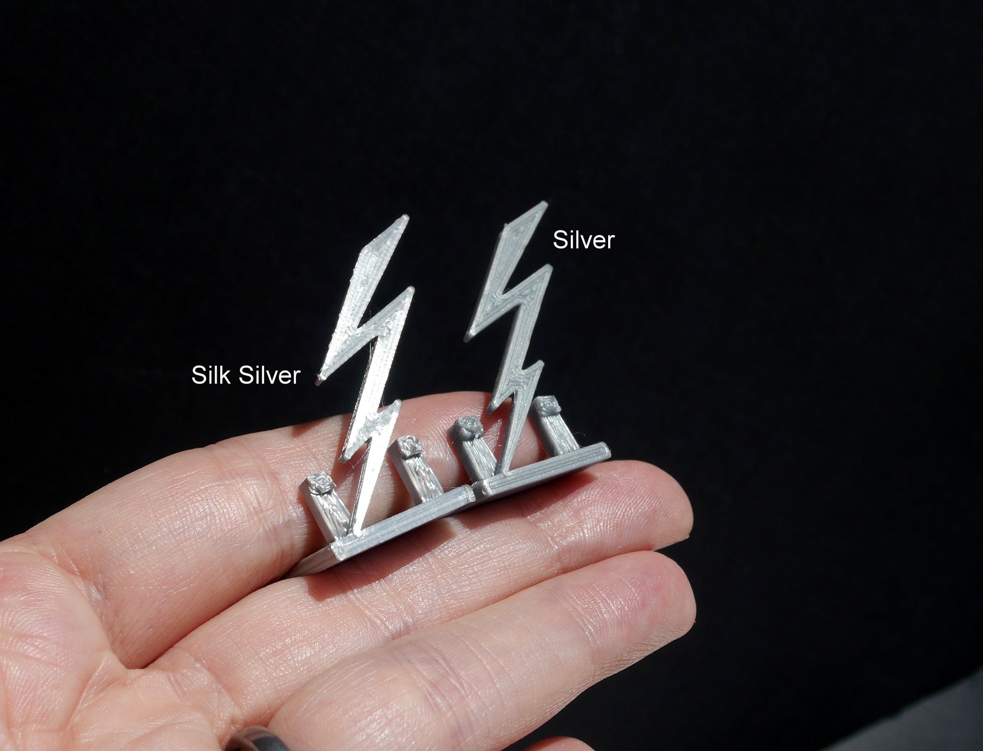 A 3D printed Lightning Bolt Wedding Name Stand, (for wedding / event / party seating) made with plastic PLA filament. PLA is a fully biodegradable thermoplastic polymer consisting of renewable raw materials.
