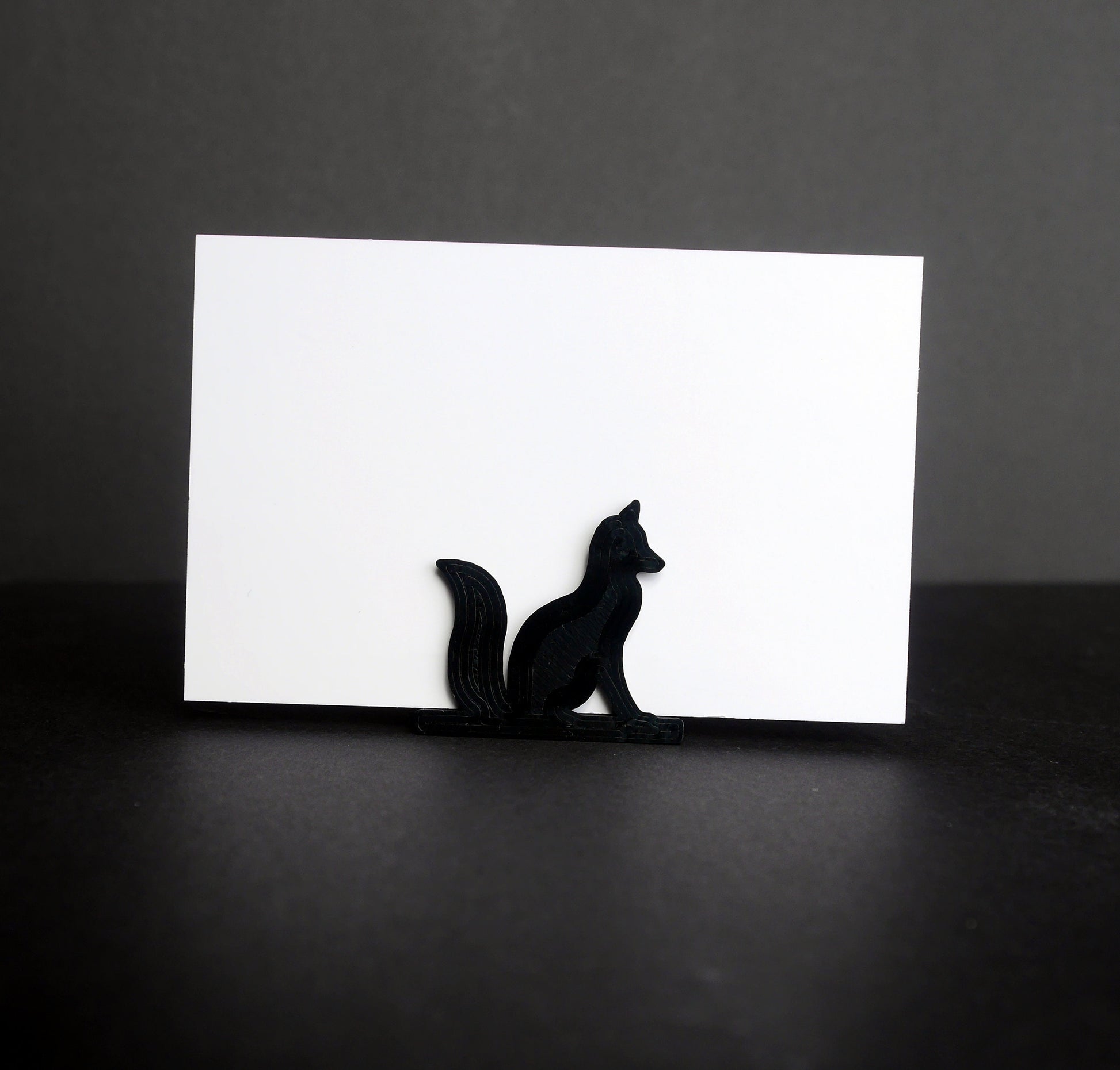 A 3D printed Fox Shaped Wedding Name Stand, Fox Name Place Holder, Seating Name Holder, (for wedding / events / party seating) made with PLA filament.