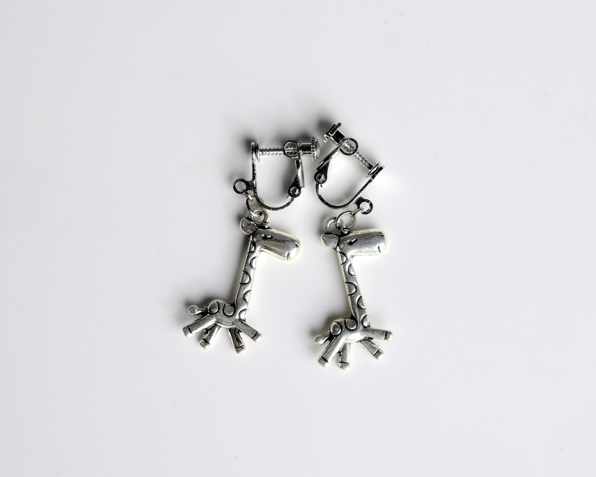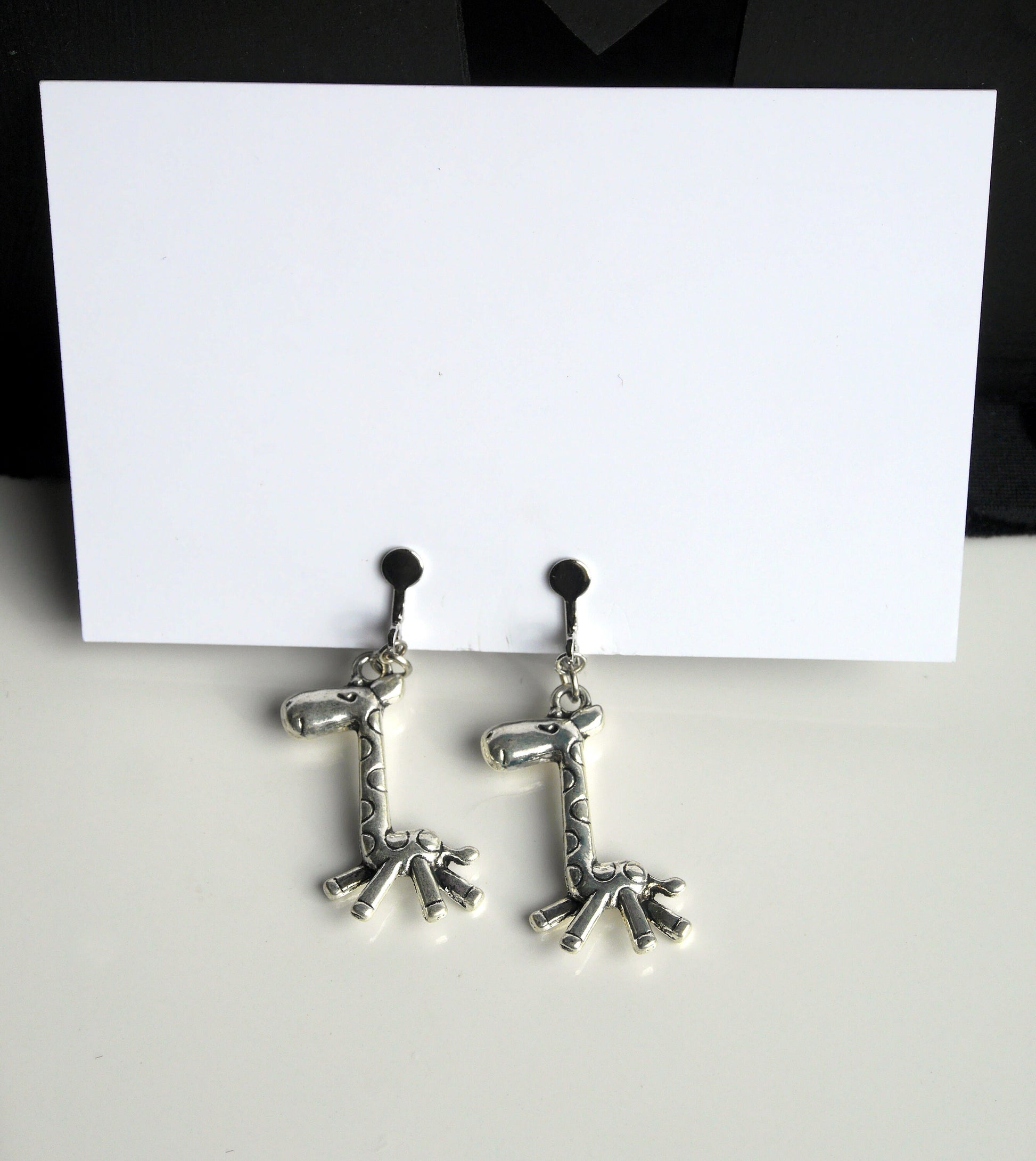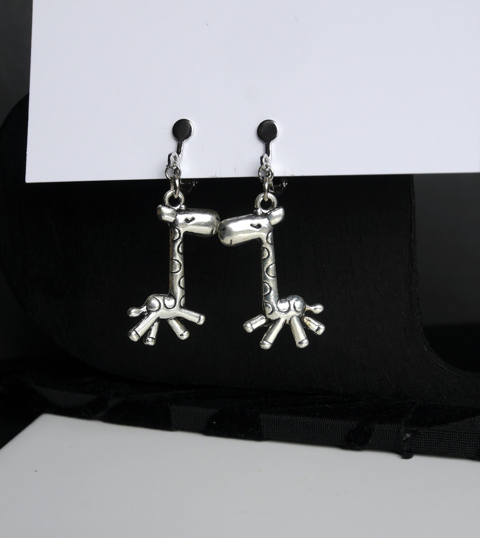 Giraffe Shaped Silver Toned Earrings (Ear Hook and Clip On)