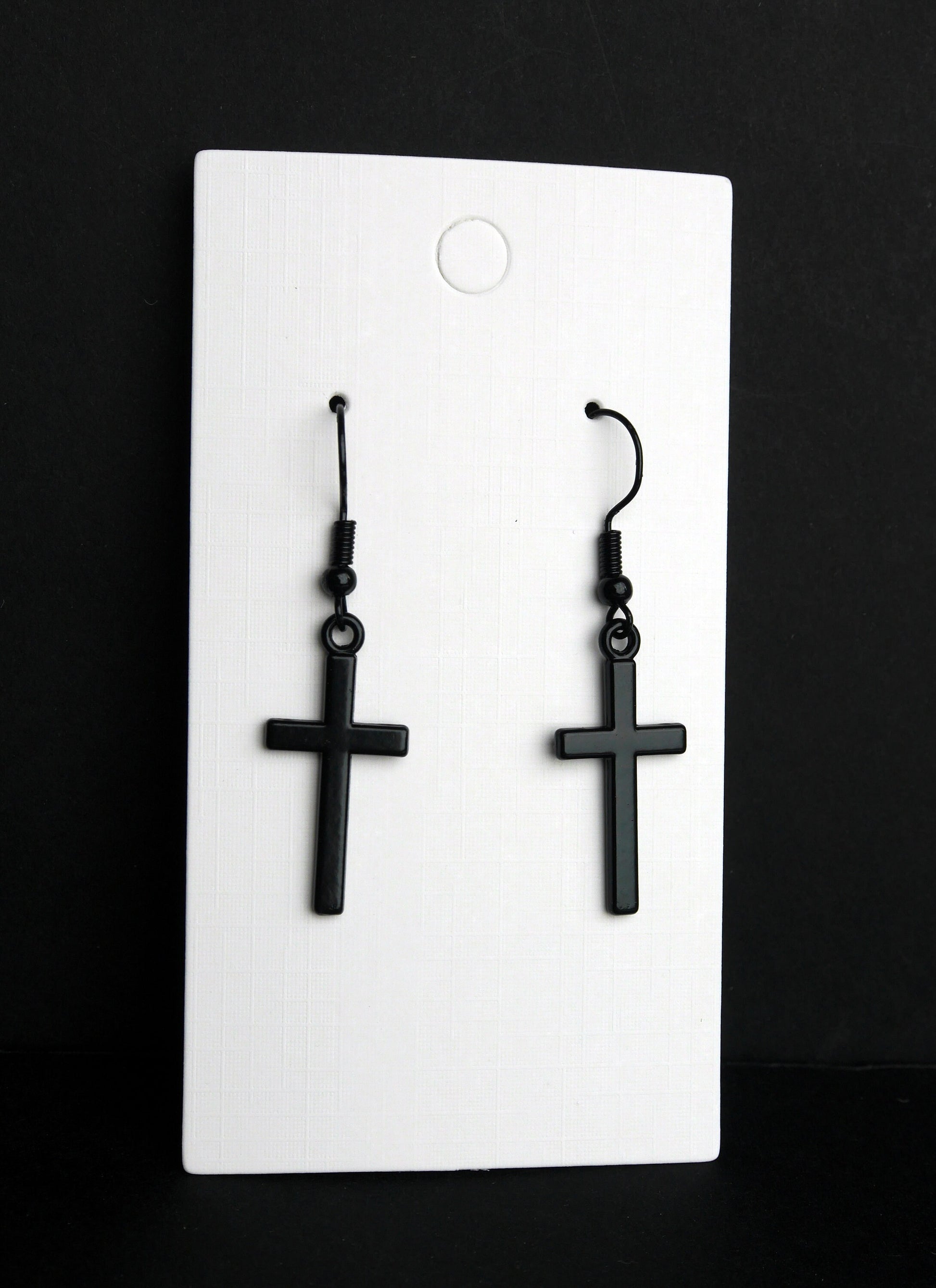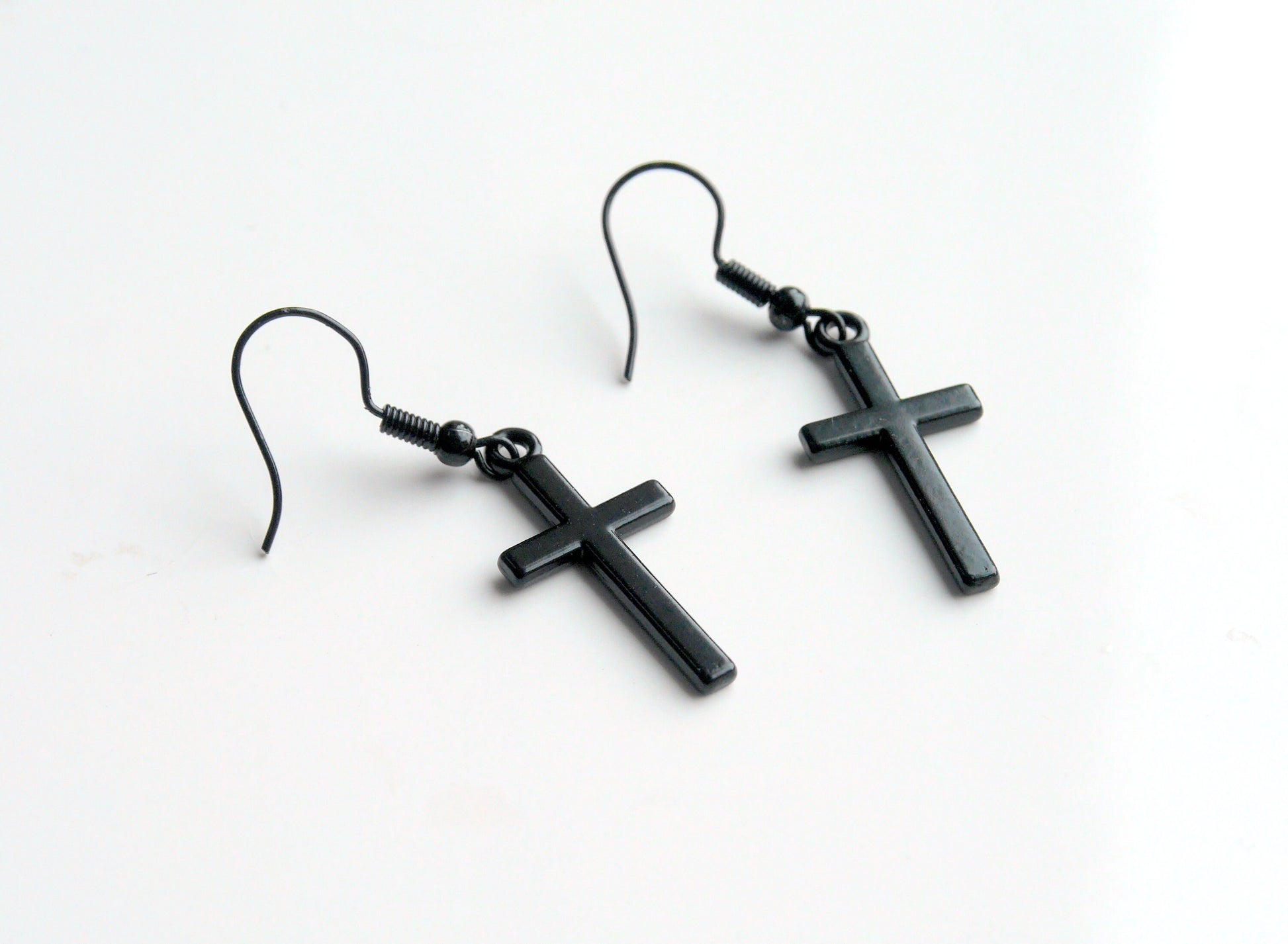 Gothic Black Christian Cross Shaped Hook Earrings