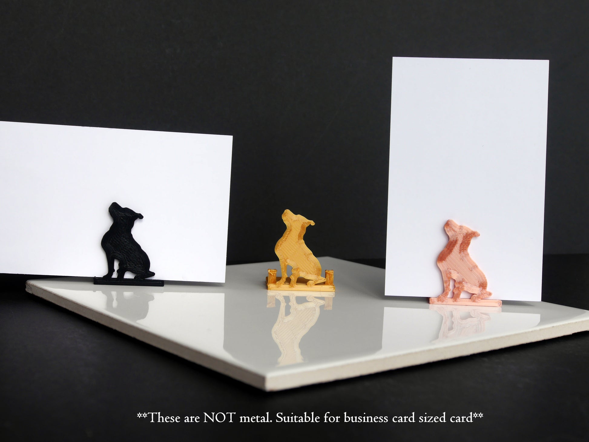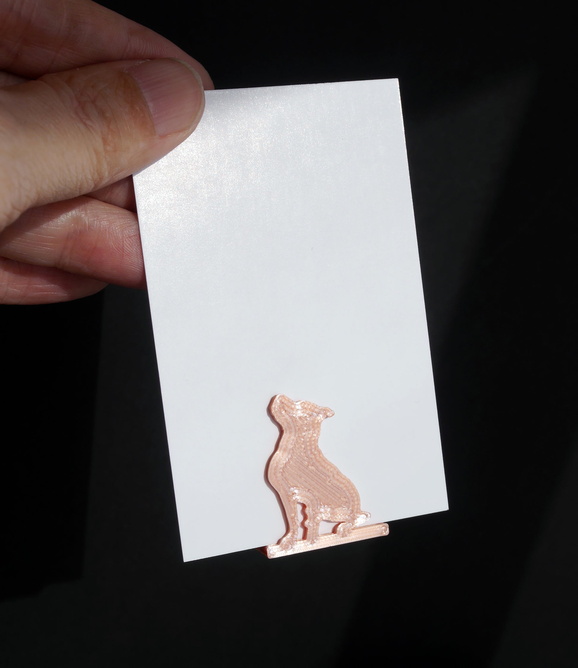 A 3D printed Pitbull Terrier Shaped Wedding Name Stands, Dog Name Holders, (for wedding / event and party seating) made with plastic PLA filament.