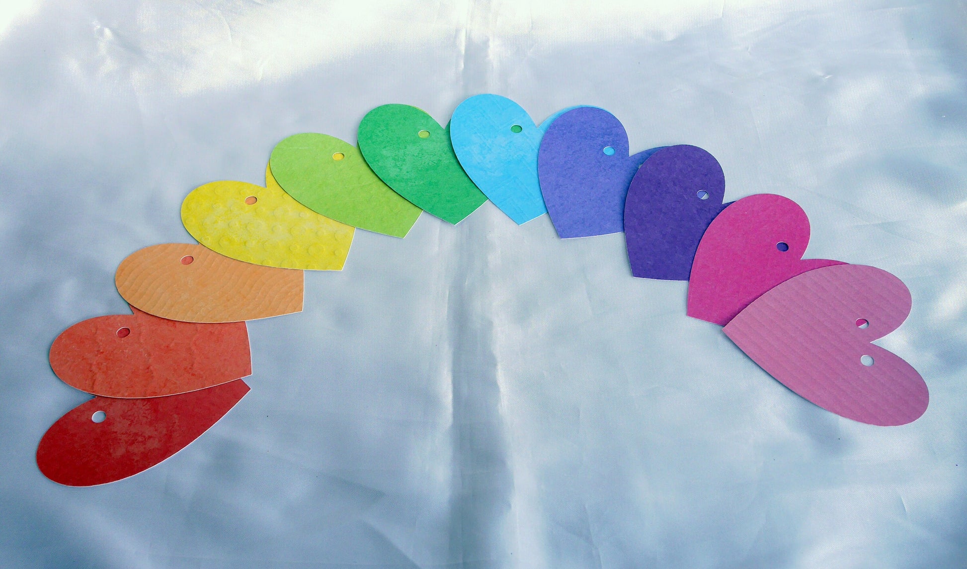 Rainbow coloured heart shaped card paper bunting, perfect for a rainbow baby shower, rainbow themed wedding, girls birthday party or any other special occasion!