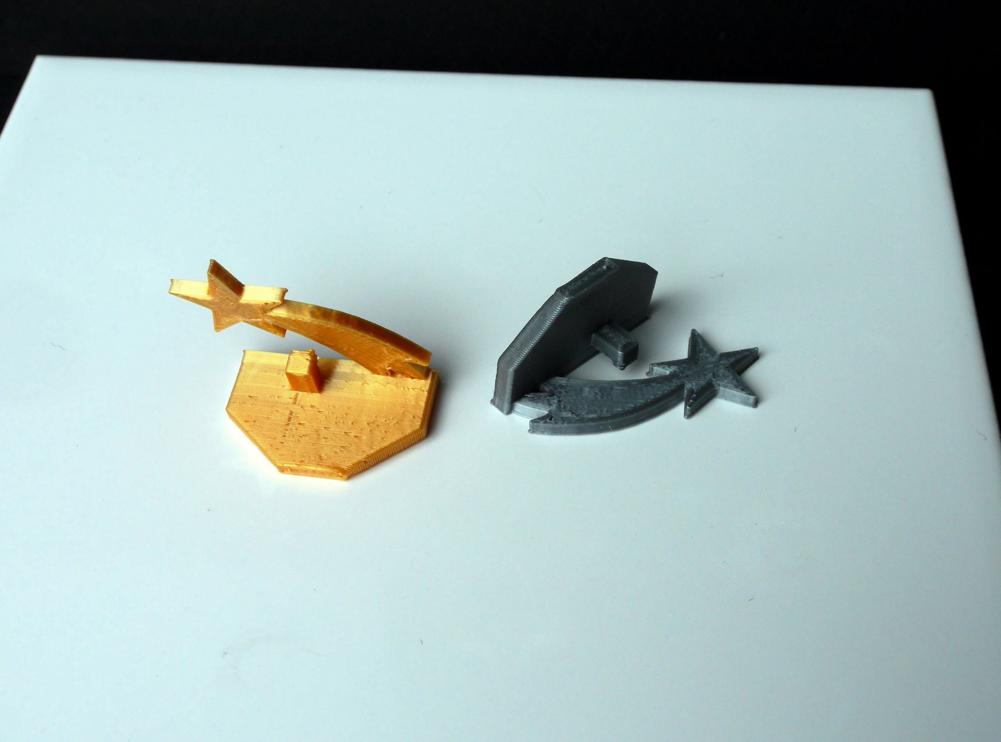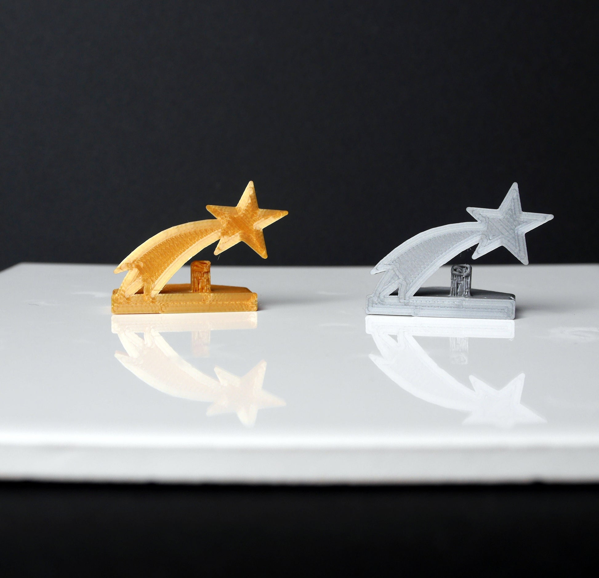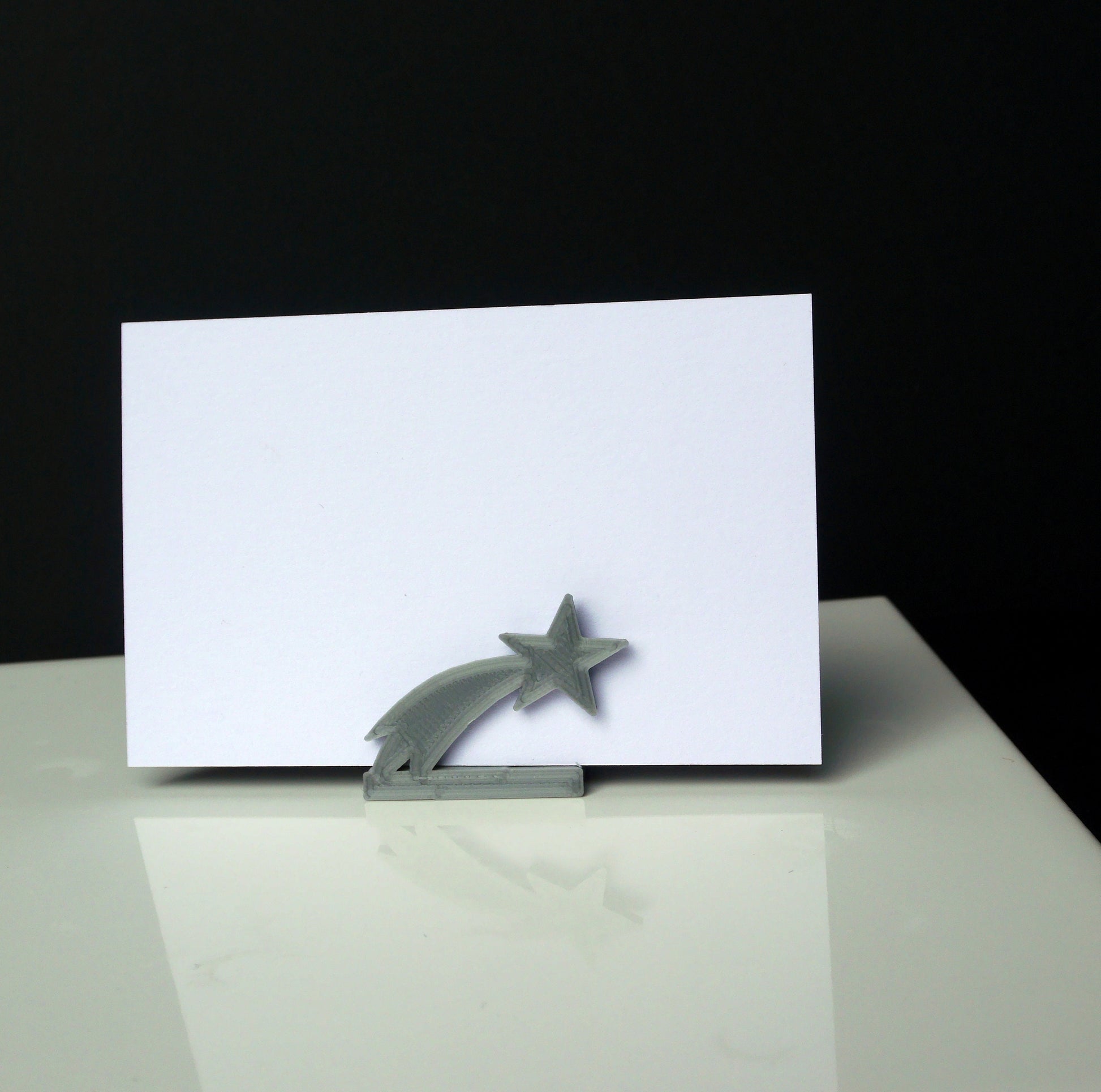 A 3D printed Shooting Star Wedding Name Stand (for wedding / event / party seating) made with plastic PLA filament. These are NOT metal. Photos of other stands used are just examples of colour options available.