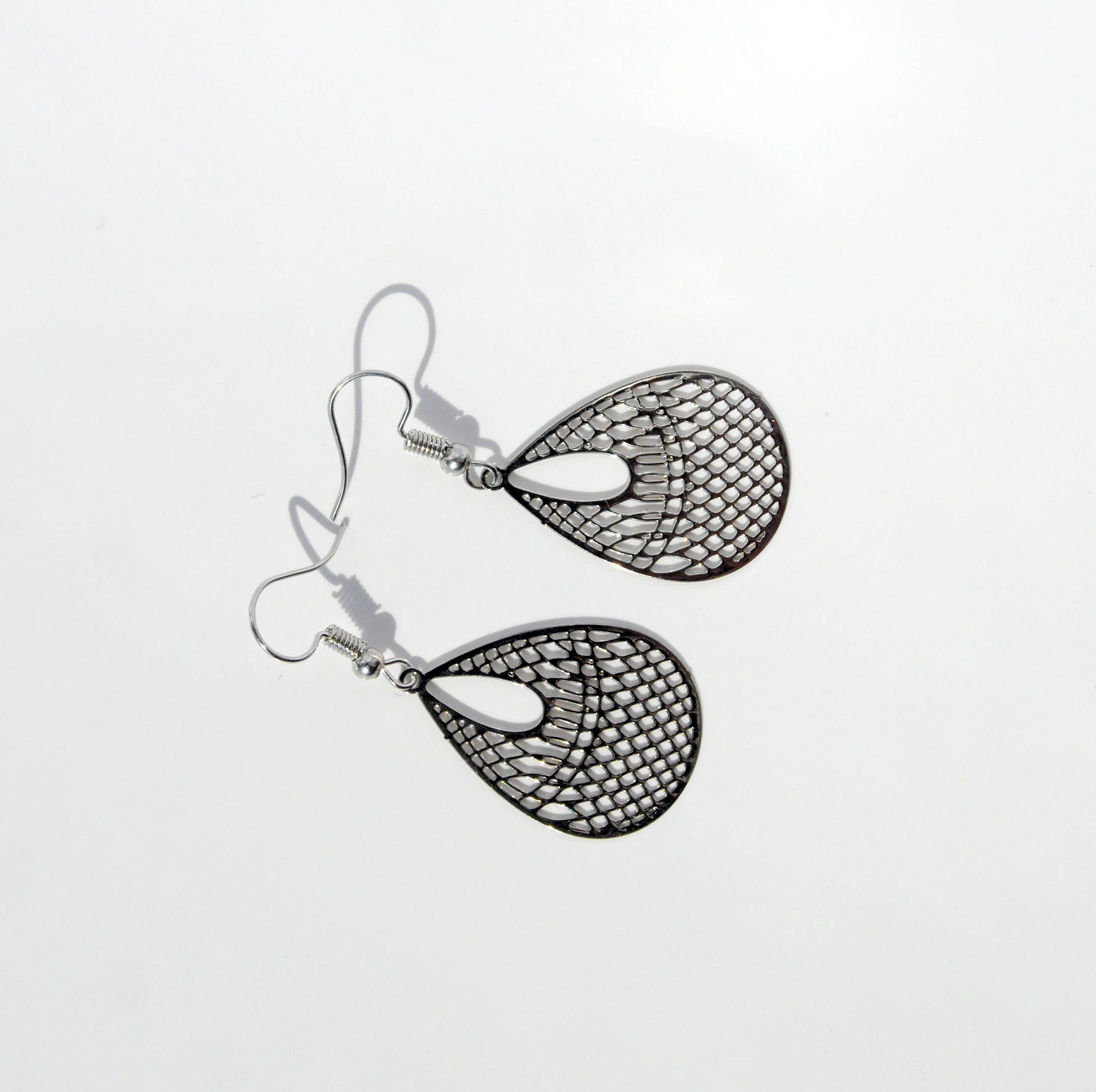A gorgeous pair of intricate Silver or Gold tone, Gold Teardrop Earrings, Silver Teardrop Bohemian Style Earrings.