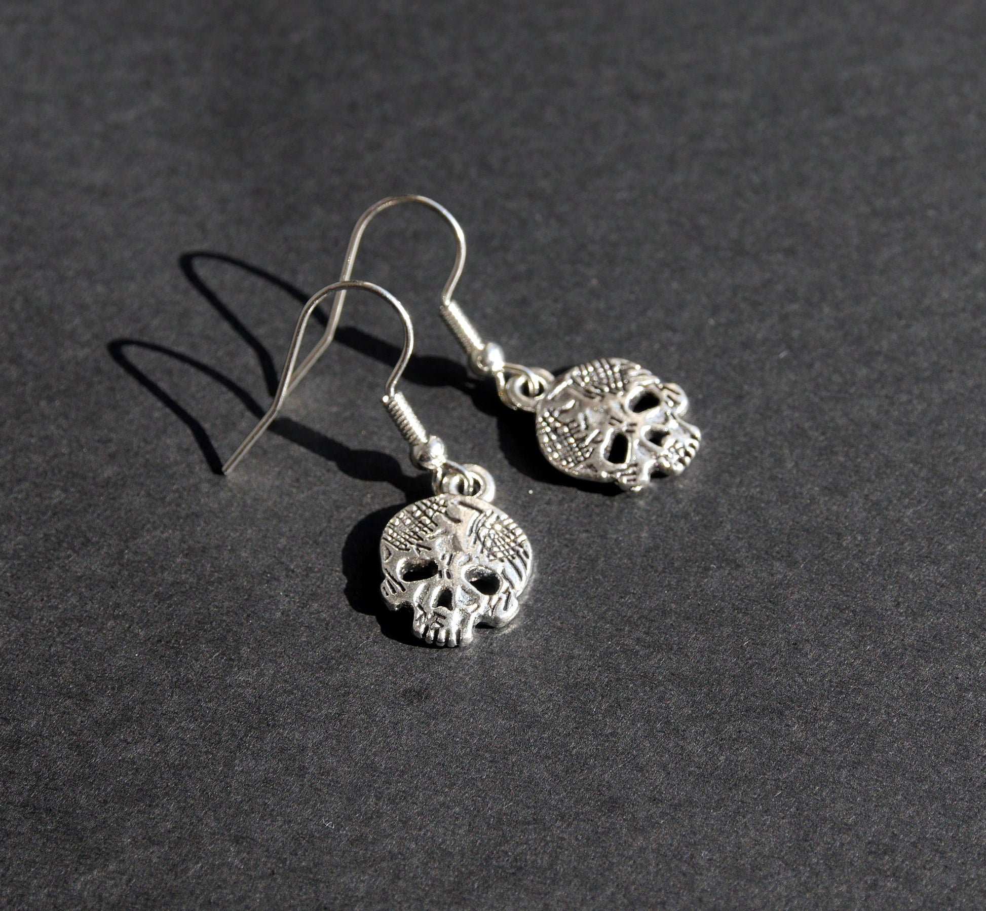 Dangling Small Silver Skull Head Earrings, Metal Skull Earrings,